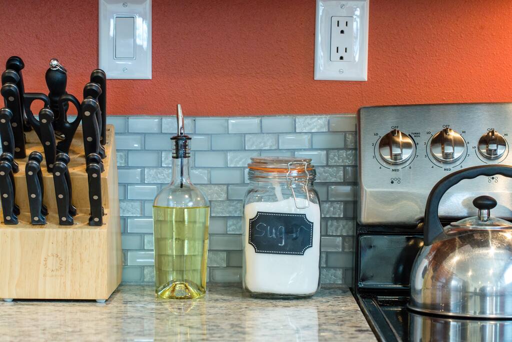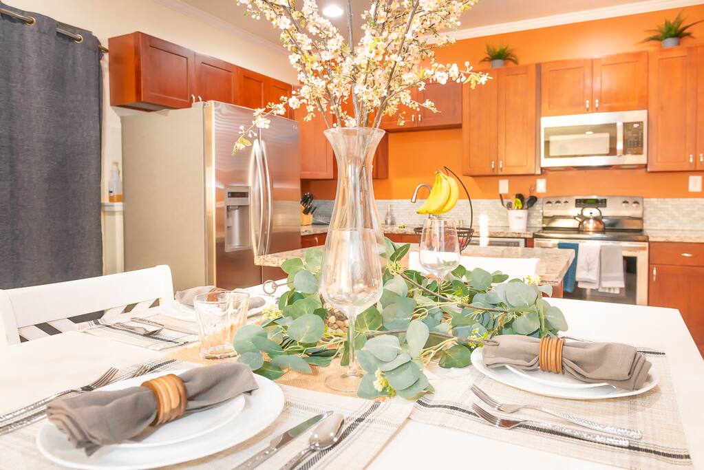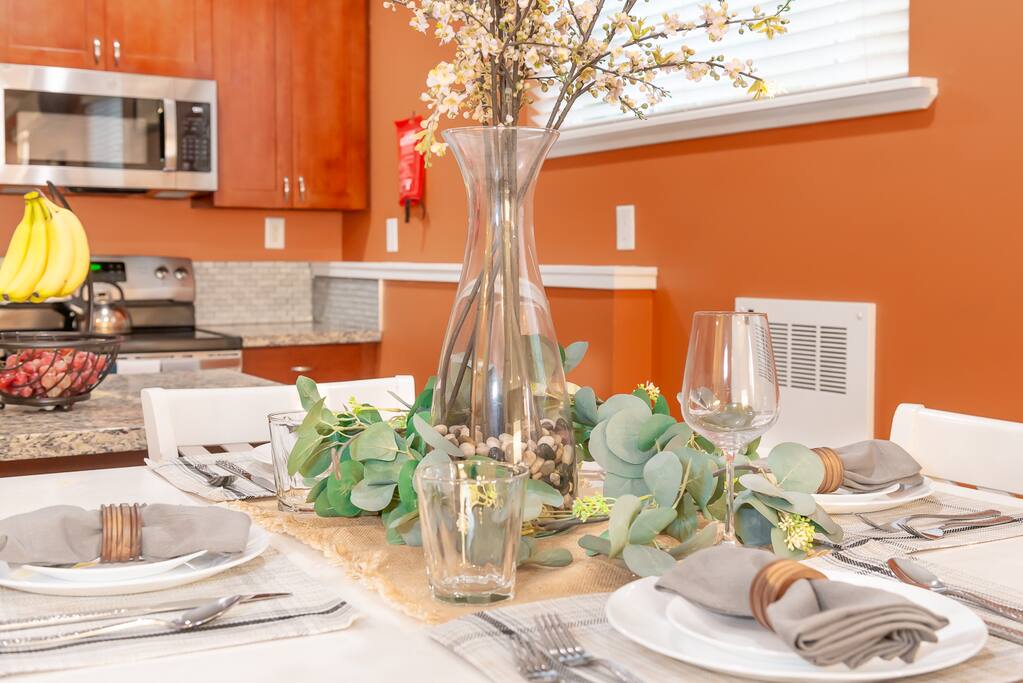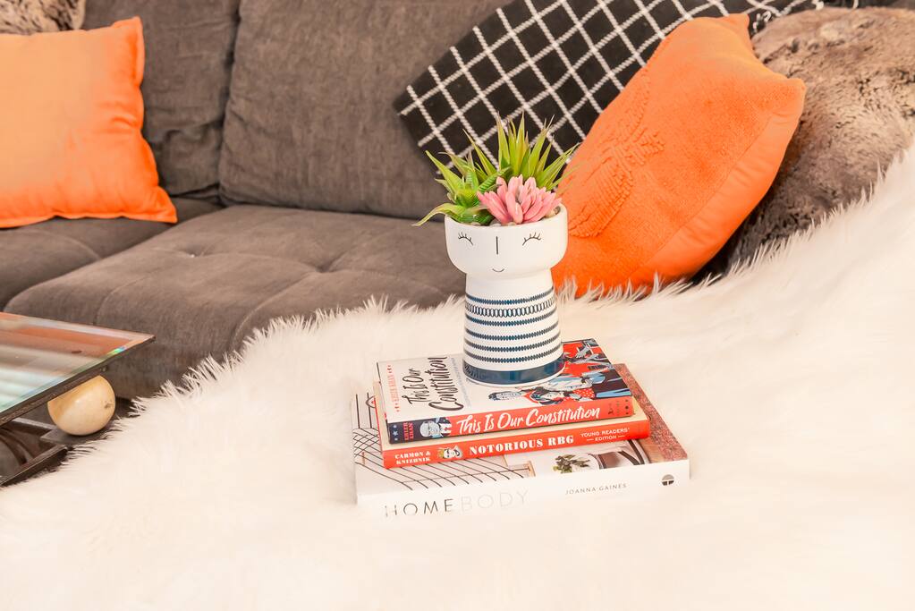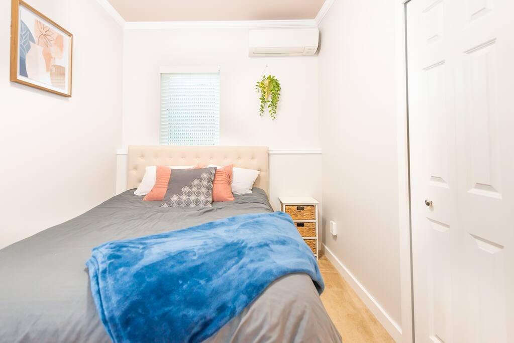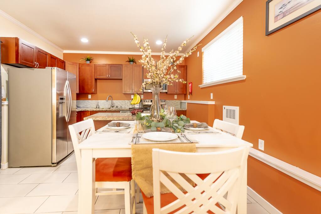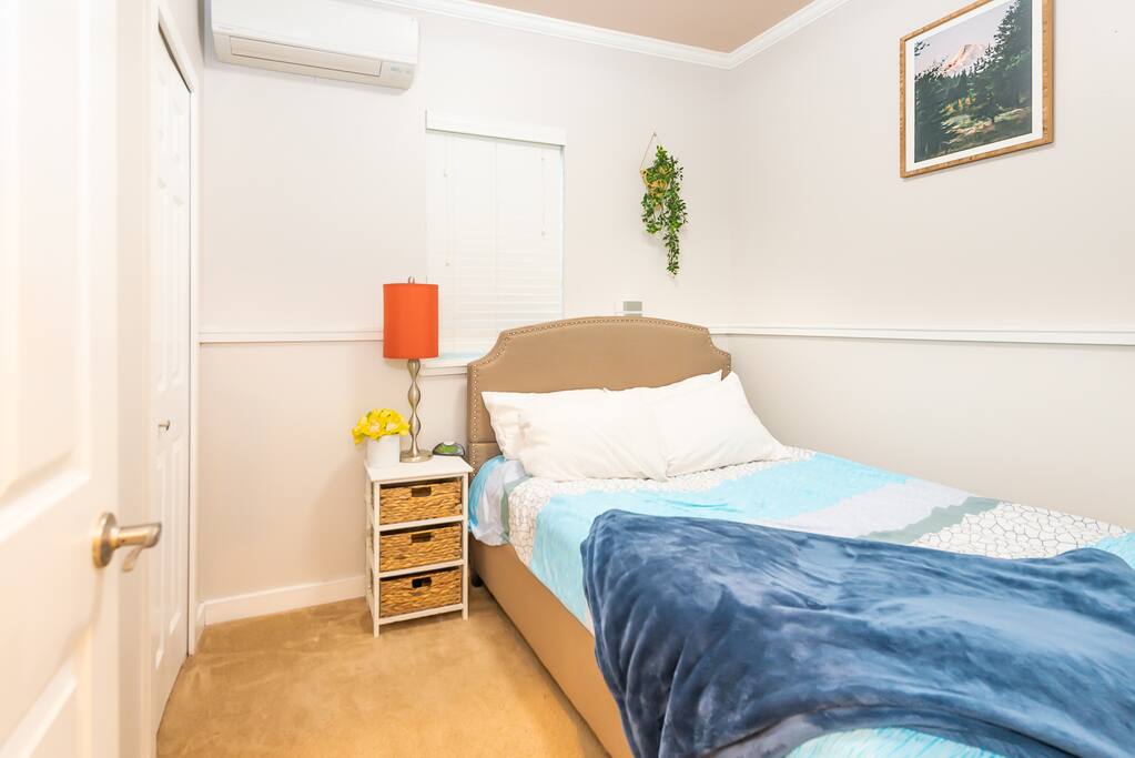 Welcome to our spacious and comfy guest suite! Why settle for a boring hotel room when you can have a large kitchen with stainless steel appliances, quartz counters, and an in-unit washer and dryer? Plus, enjoy the comfort of memory foam beds and designated parking - one assigned spot and two compact overflow stalls. We're pet-friendly too, with a private backyard for your furry friends. Book now for the ultimate guest experience!