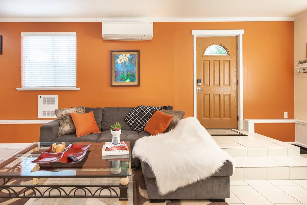 Pets We absolutely love furry friends and we know that they're a part of the family. However, we do reserve the right to decline on a case by case basis. We kindly request that you check with us prior to booking and let us . We ask they stay off the furniture and bedding, and that you scoop the poop—because no one likes surprises in the yard. All pets also need to be house trained. Noise As much as we love to groove, we do want to let you know that there are people living above you and there may footstep noise. Our home is perfect for those who don't mind a little cha-cha-cha from above, but may not be the best fit for light sleepers. Just think of this unit as a bottom floor apartment and you'll be good to go! SURVEILLANCE CAMERAS We want to ensure that our home is safe and secure, so we do have surveillance cameras monitoring the exterior perimeter of the house around the clock. Don't worry though, we won't be using them to spy on you, we just want to make sure that our home and guests are safe and secure.