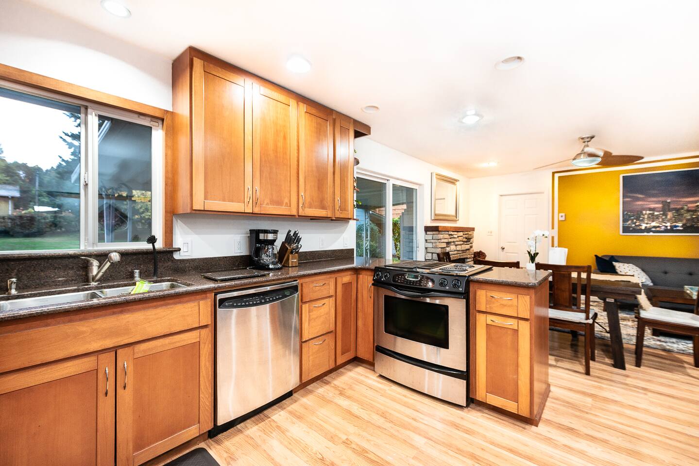 Welcome to our cozy 3 bed, 2 bath mid-century rambler in Tukwila! Relax in the master spa suite's jet tub after your travels. Our home is perfect for solo adventurers, families, and business travelers with easy access to Seatac airport, Seattle, and Bellevue. Each bedroom has a comfy queen bed, and the backyard is a great retreat. Book now and let us show you some PNW hospitality!