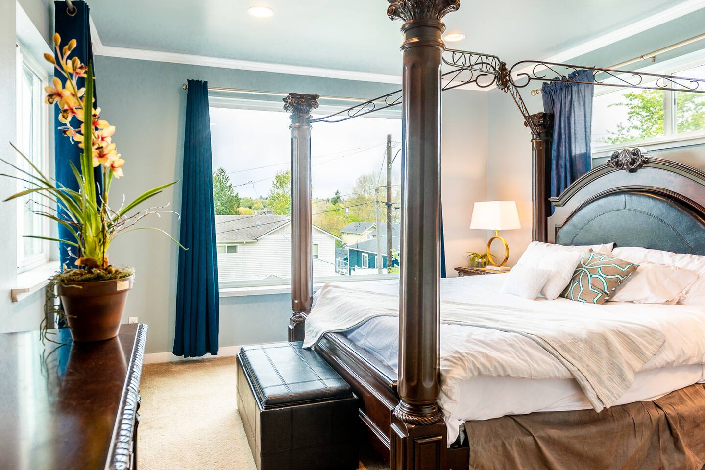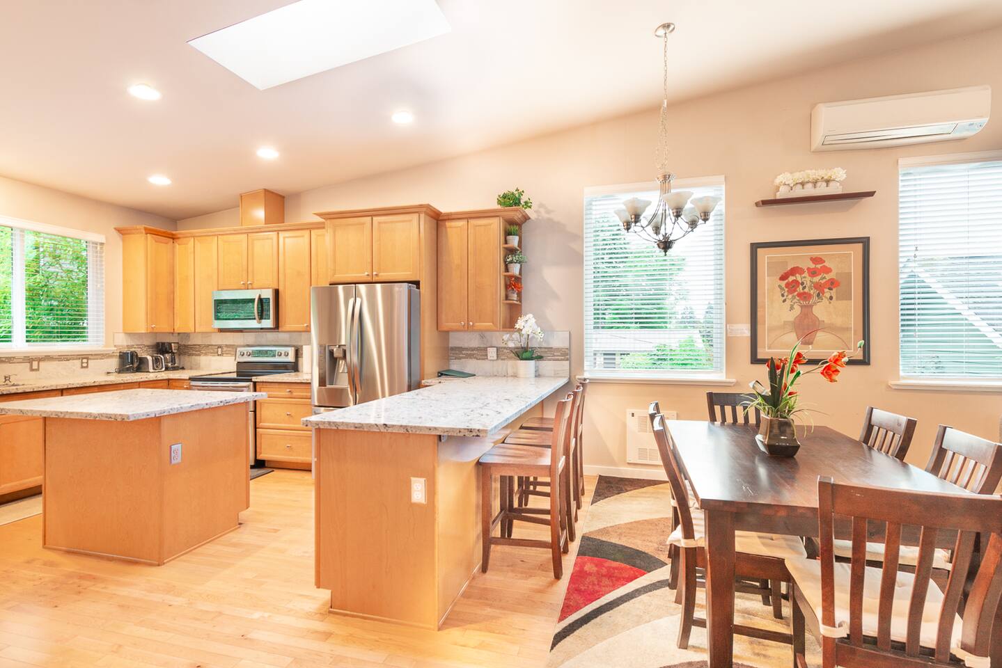 You are looking at our duplex-style house, where Unit A (~1500 sq ft) is on the second floor. You'll have a separate entrance (check out the pics). Bring your family along for the ride, as we're family-friendly. The comfy L-shaped sofa in the large living room is perfect for relaxation, while the kitchen has plenty of counter space. The colorful bedrooms are perfect for the vibrant city. All three bedrooms feature memory foam mattresses for a good night's sleep. Need a customized temperature setting? Air conditioning is provided via split A/C systems in each room. In your own private garden, relax in the backyard or on the large patio deck with overhead cover. We do not permit parties or events without prior written consent. Dedicated parking space is available, along with additional street parking. Attractions such as Seward Park (3-minute drive), Columbia City (4-minute drive), Pike Place (17-minute drive), and Alki Beach (18-minute drive) are nearby. Get ready for work from home with very fast internet speed! Entertainment options include a 75-inch Smart TV, Xbox One X with games, and board games.
